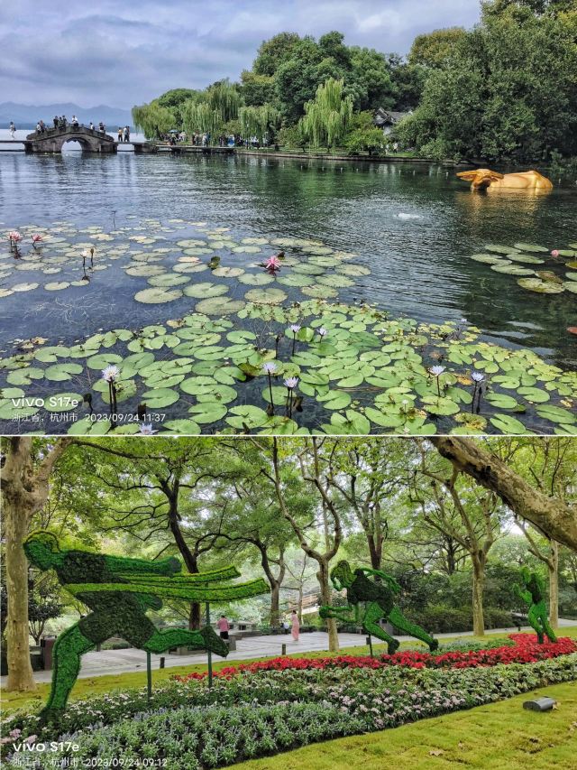 2、杭州西湖是杭州地标式名胜区,也是世界文化遗产,自古留有的名人足迹、名著传说、影视作品数不胜数,是杭州旅游乃至全国旅游必打卡之地。景区的官方全称为西湖风景名胜区,面积广阔,湖面面积6.38平方千米,水源引自钱塘江、出水到京杭大运河,外围陆地面积35.64平方千米,散落大大小小的子景区几十处,囊括江南风光、历史名山、人文建筑、博物馆、儿童娱乐等众多种类景点,全部逛遍需6天。西湖东岸面积狭长,自北向南依次由六公园、西湖天地、涌金公园、钱王祠、柳浪闻莺公园、学士公园6部分组成,因篇幅限制,西湖东岸要分2篇。