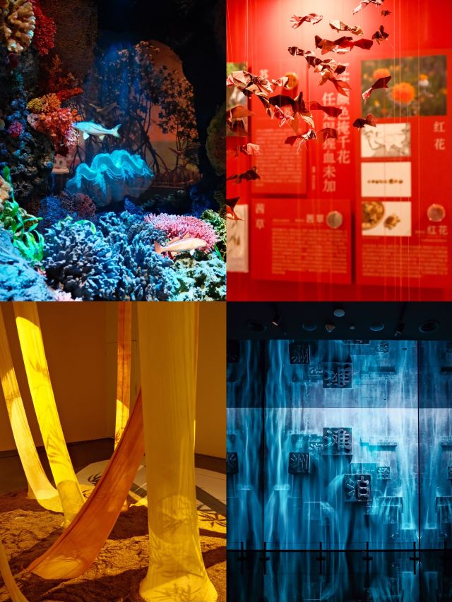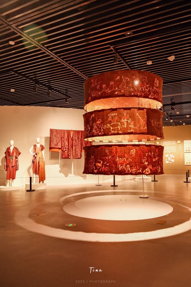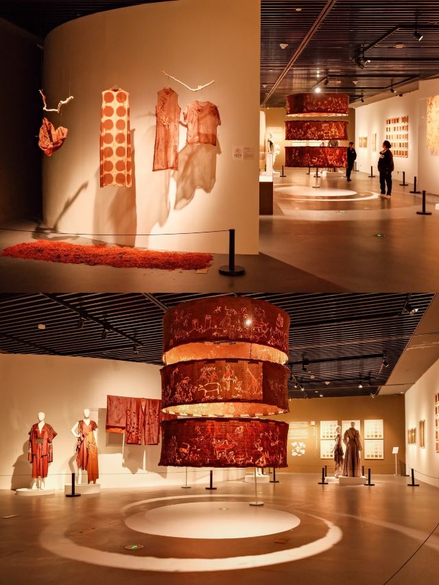 中国植物染艺术展厅,展示了用自然植物做染料染出来的面料,还有用这些面料做的衣服,颜色丰富多彩🌈