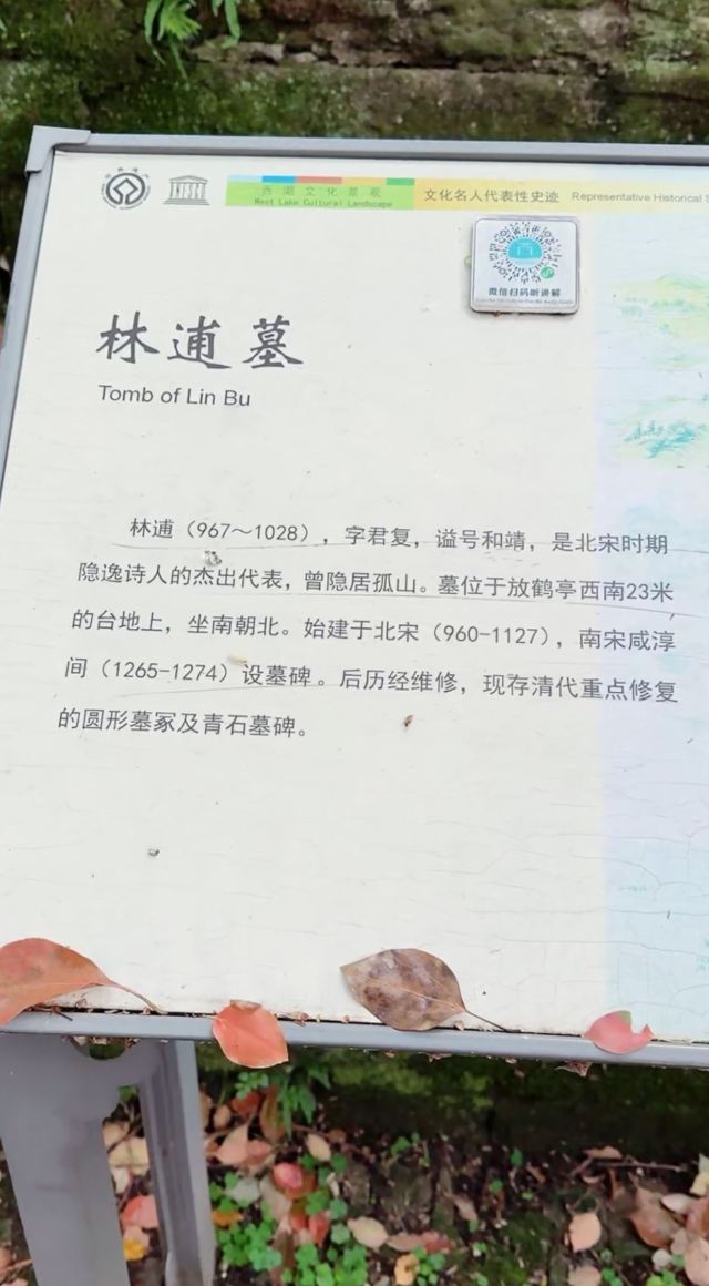 林逋终生未娶,以梅为妻,以鹤为子,史称“梅妻鹤子”。他善书画,工诗词,有“疏影横斜水清浅,暗香浮动月黄昏”等咏梅佳句传世。宋真宗得知他的事迹后,曾令府县定期赐予粟帛以示慰问,但他不为所动,坚守自己的隐逸生活。