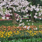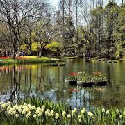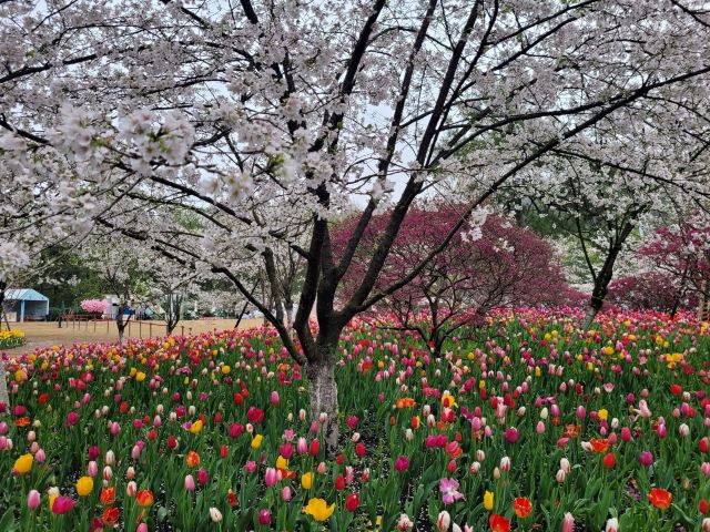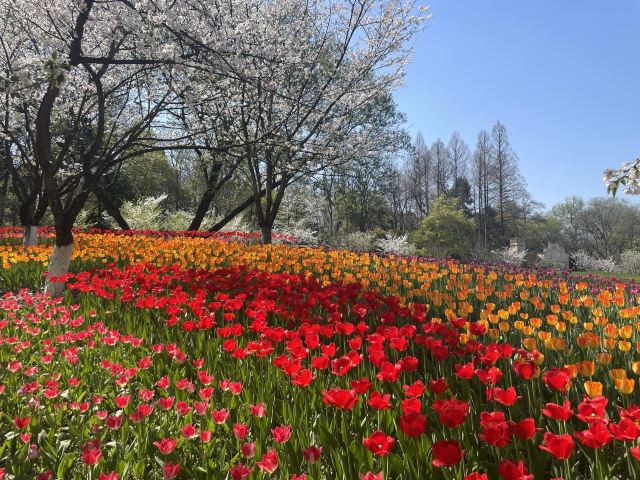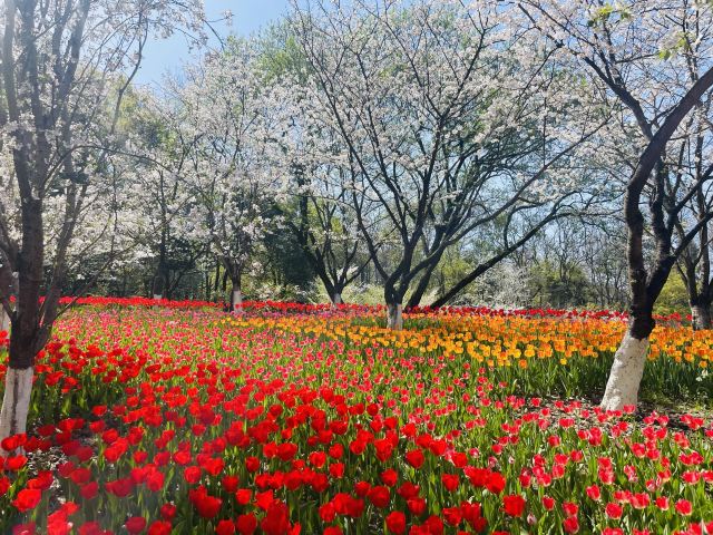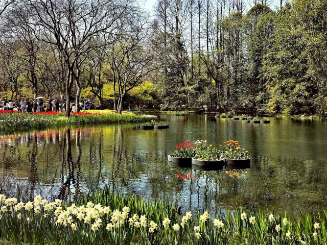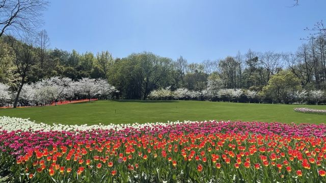 - 景观丰富:公园内有湖泊、小溪、沼泽等水域,还有树林、草坪、山坡等多样地形,山水相依,形成了自然优美的生态环境。种植了数千株樱花和3000多平方米的郁金香花田,还有玫瑰、兰花等多种花卉,三月末到四月初,樱花与郁金香齐放,花海壮观。