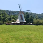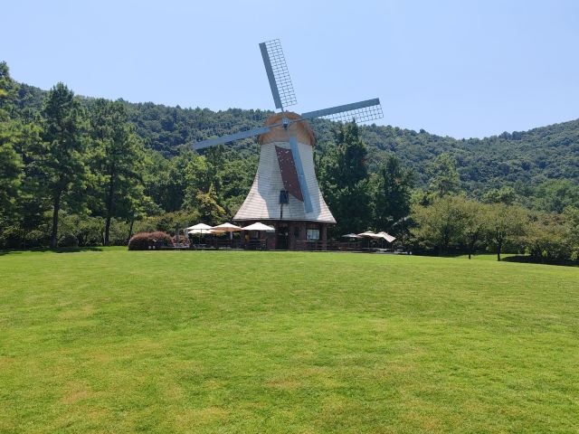 还有大草坪上的大风车,在春日的阳光下也熠熠闪