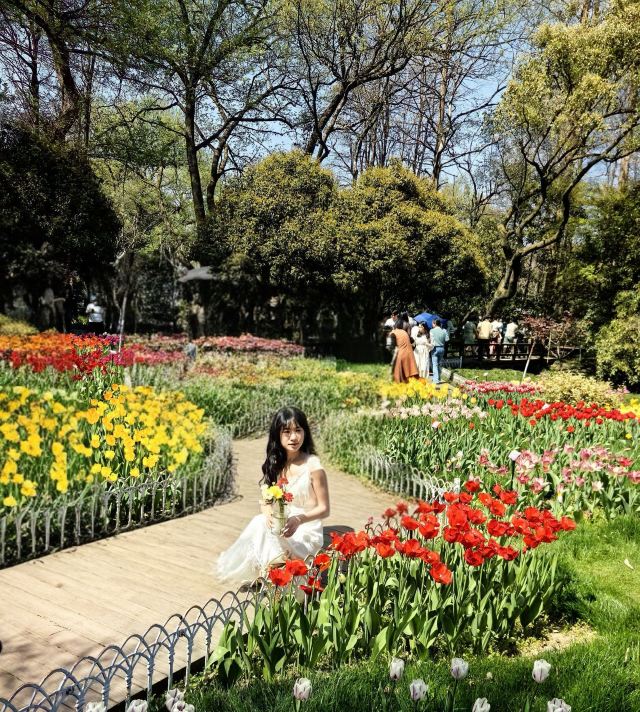 拍照:小心人从众,给闺蜜们拍照记得要蹲一下哦,低角度镜头避开人群,拍郁金香也可以把手机放在郁金香根部,从下往上拍,会避免杂乱。