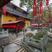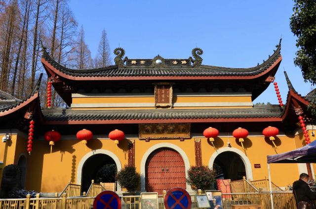 三天竺法镜寺位于西湖区灵隐天竺路旁,西傍飞来峰,东临月桂峰。清咸丰十一年(1861)在兵火中化为灰烬,光绪八年(1882)再次重建。现为西湖唯一之尼众寺院。2006年开始进行修缮整治。
