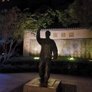 ①百寿图:1面刻有5×20个不同风写法的“寿”,墙前有1尊老者打拳的铜雕。