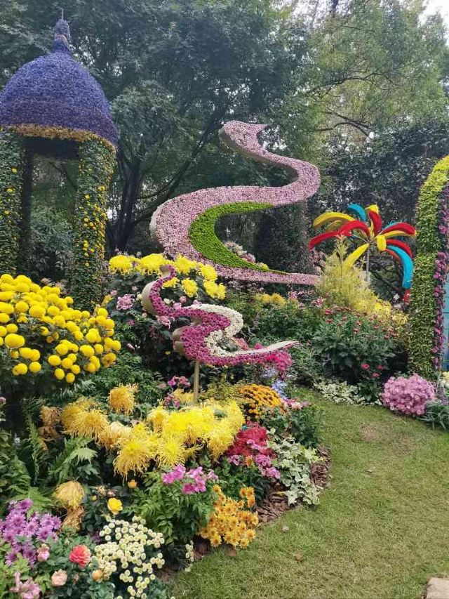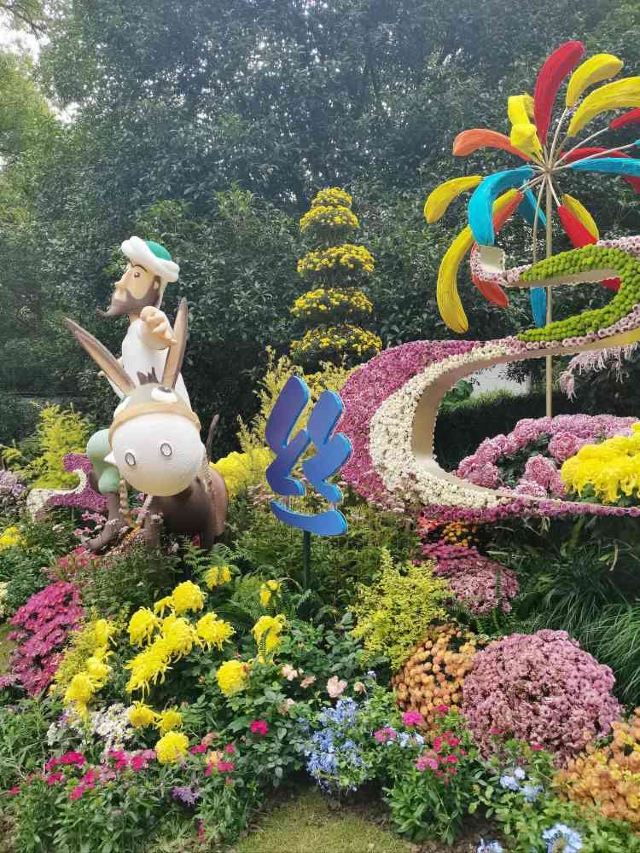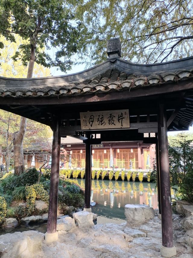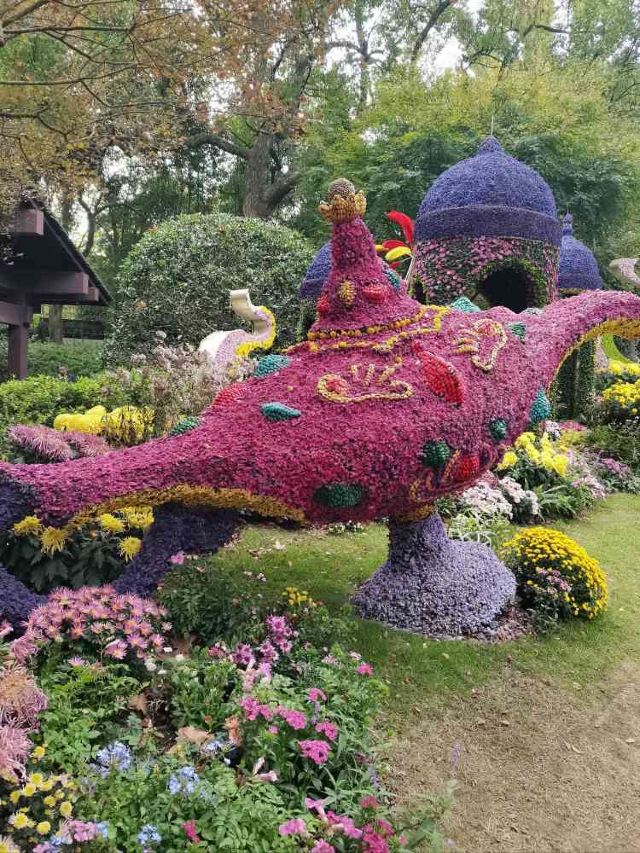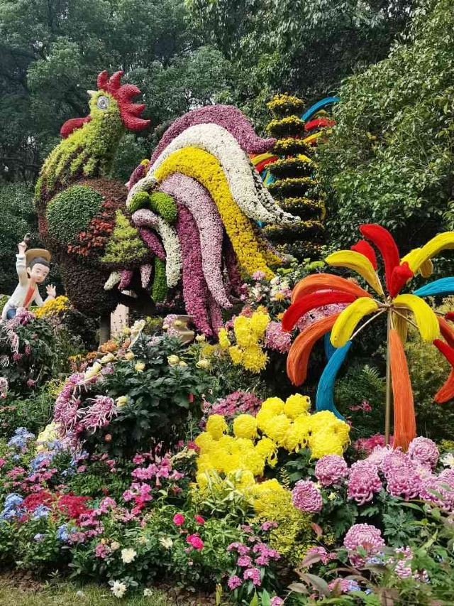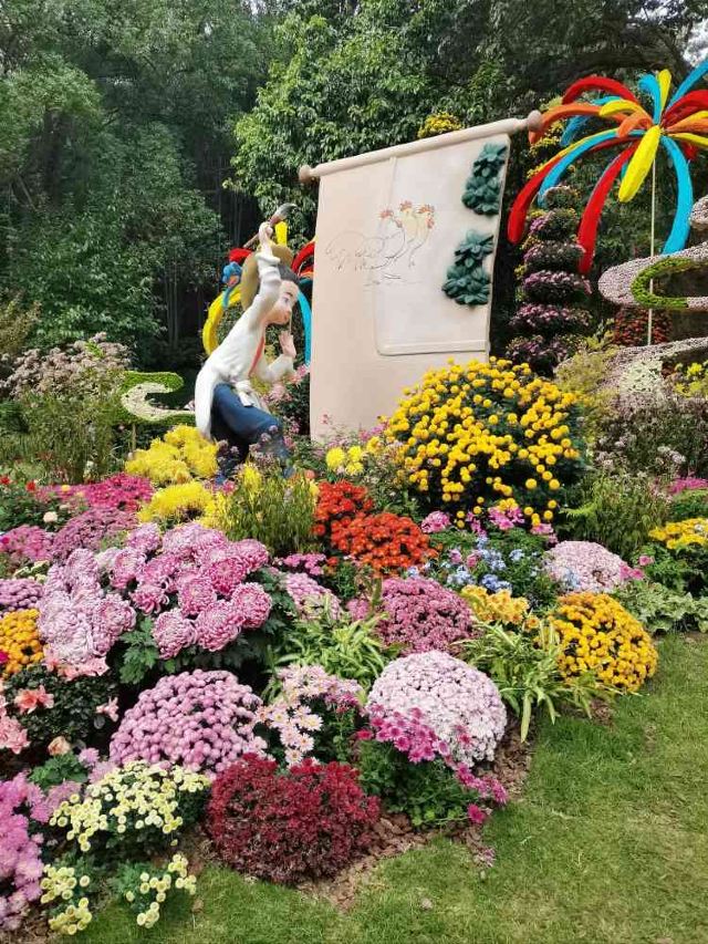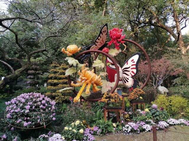 除了观赏植物,植物园北侧山水园附近的玉泉有一个长方形的泉池,里面游满了肥硕的青鱼和红黄鲤鱼,是观鱼、小憩的好地方,也深得小朋友的欢心,没辜负廊檐下董其昌题写的“鱼乐国”美称。附近的韩美林艺术馆可以看到不少韩美林先生的作品,一楼是各种金属展品,二楼是画展,对艺术感兴趣不妨进去参观一下。
