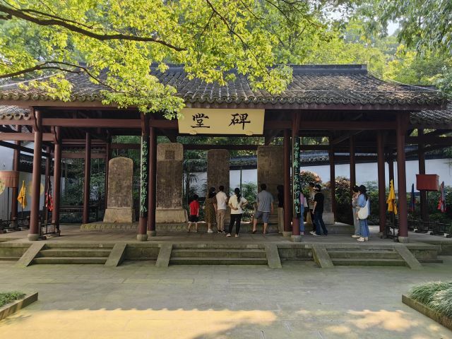 于谦,钱塘县(今杭州)人,明代杰出的政治家、军事家。因“谋逆罪”在北京遭冤杀,后遗骸安葬于现址。冤案经平反昭雪,明孝宗赐谥“肃愍”,并在墓旁建旌功祠,设春秋二祭,形成祠墓合一格局。现由墓区与祠庙区组成,墓道两侧配置仿明式石翁仲、石兽及牌坊。各厅、殿陈列着于谦生前史料、实物等。墓区松柏围绕,庄严肃穆,与岳庙一同成为西湖边不可多得的爱国教育人文景观。