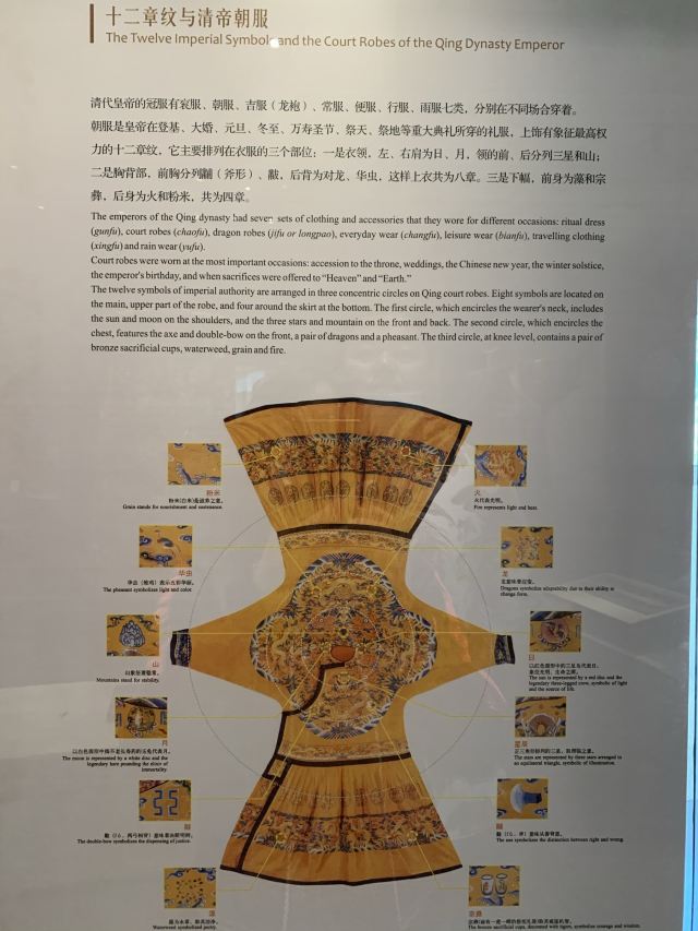 涨了不少知识,比如学到了清代龙袍上的十二章纹,仔细对比了龙袍,真的可以一一找到。各种丝织品的知识,蒙元时期的服装,辽代的春水秋山纹样,清代的马面裙...等等。很涨知识的一个地方。
