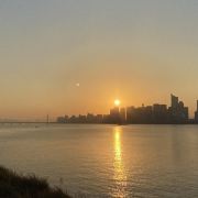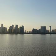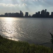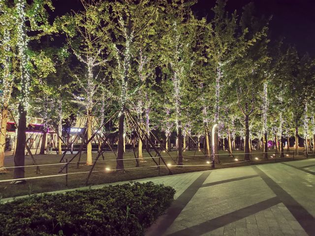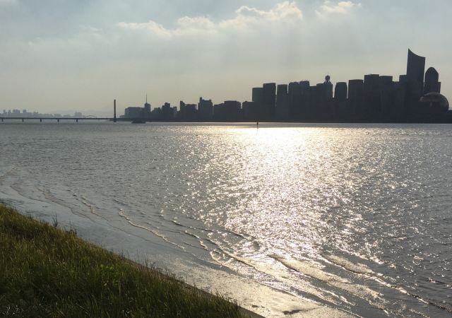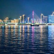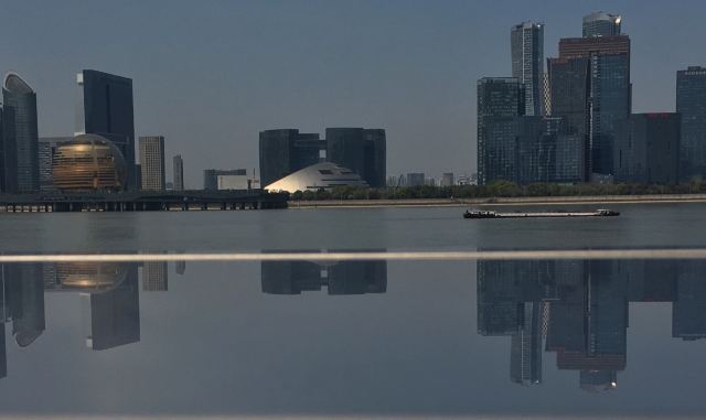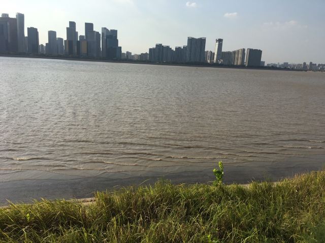 沿着大草坪,走入钱塘江景观带,欣赏钱塘江壮丽风景。华灯初上,夜色阑珊,夜景更动人心弦。