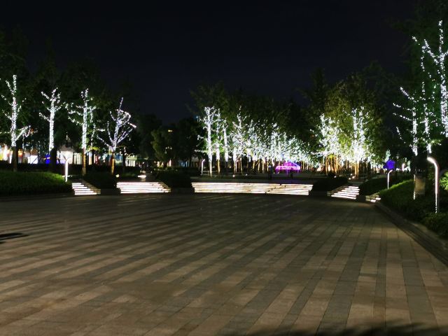 草坪两端是超大的音乐广场,两个半圆阶梯状观众席,方便举办集体活动。