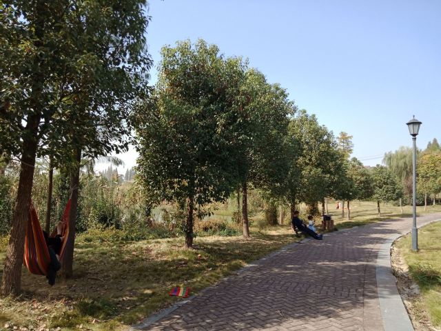 3分 不错南湖位于余杭城南,古时为滞洪围筑而成,因上游建了青山水库,南湖的滞洪作用相对减小。近年在南湖东北角建了公园,考虑到滞洪作用,公园没建亭台楼阁,只有道路、石凳、草地和树木。
