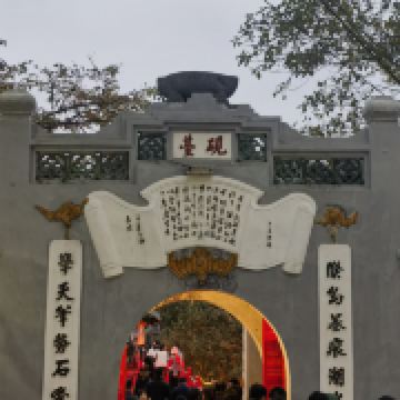 还剑湖原名绿水湖,后因传说越南君主黎利在此得剑还剑而改为现名。湖周围有树木苍翠的林荫步道,是当地人纳凉、散步的休闲之所。椭圆形湖面上有两处中岛建筑,北边的是玉山祠,南边的是龟塔。