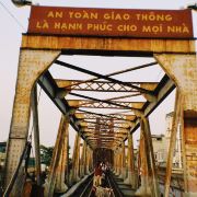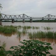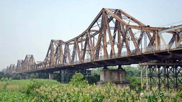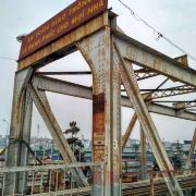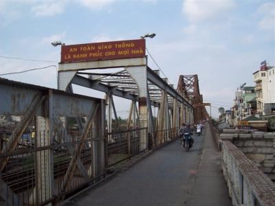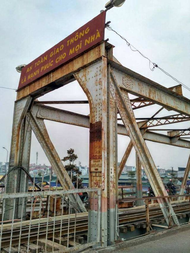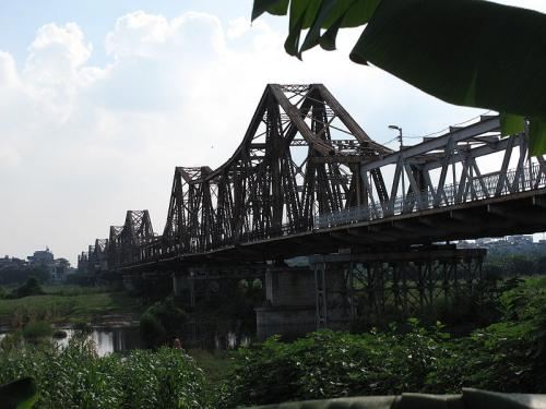 龙边桥于1898年动工,1903年完成,是越南北方很古老的一座铁路桥。该桥跨越红河,全长1682.6米,主跨106.20米,为钢桁架梁悬臂桥,共19孔,是追随巴黎市13区连接巴黎及奥尔良的托勒别克铁路桥的样本设计的。