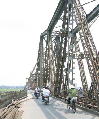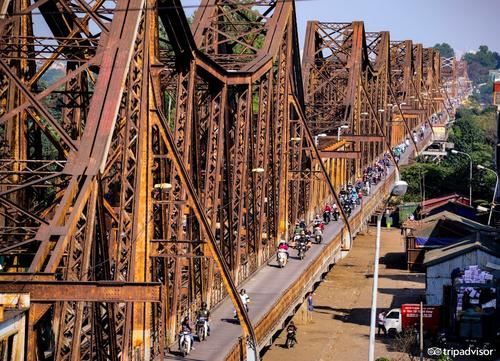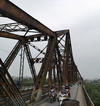 龙边桥是越南首都河内第一座横跨红河的铁桥,它由巴黎埃菲尔铁塔设计者古斯塔夫·埃菲尔设计,于1899年开始建造,1902年完工。龙边桥全长2290米,架在40米高的20座桥墩上,引道主要使用石头建成。龙边桥中间为火车道,两侧为摩托车和人行道。由于老化严重,龙边桥曾多次维修,最近一次的加固和修复是在2015年。