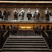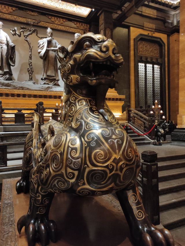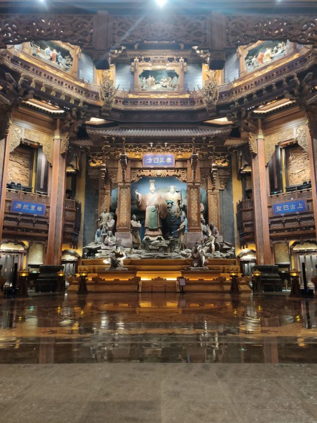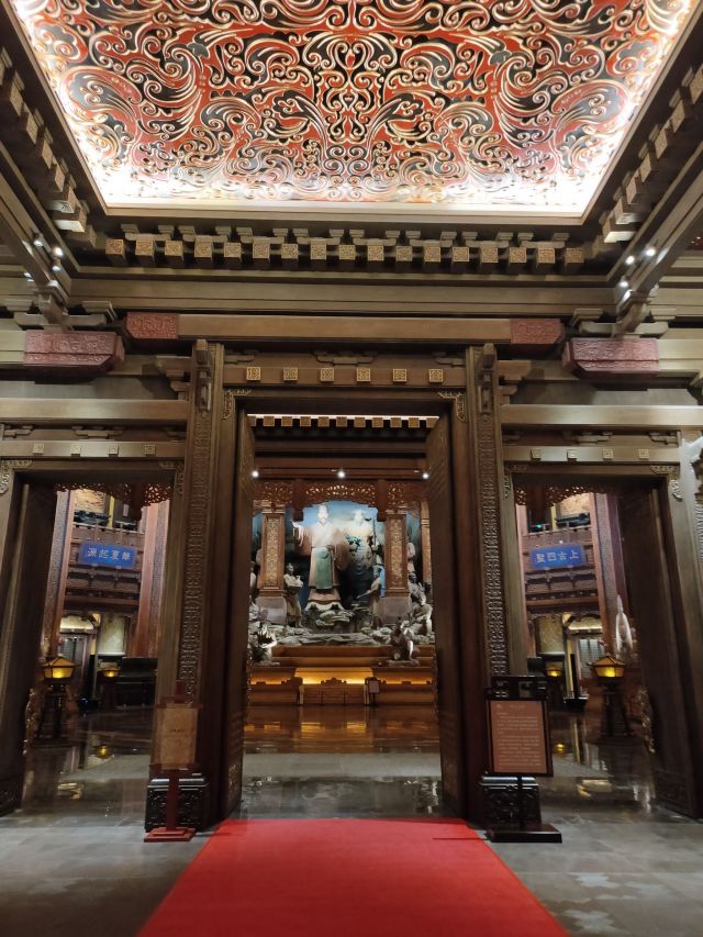 博物馆内设有多个主题展厅,展示汉代的历史、文化和艺术。其中,水下长廊以“背光布帛画”的形式展现汉代经典故事,营造出沉浸式的观展体验。知守厅展示了儒、释、道三教的代表人物和思想,体现汉代多元文化的融合。三圣殿则供奉孔子、老子和释迦牟尼三位圣人,展现汉代对三教的尊崇。此外,汉字汉语廊、汉艺廊等展区通过实物、图文和多媒体展示汉代的文字、艺术和科技成就。