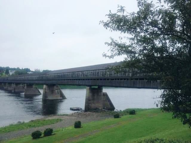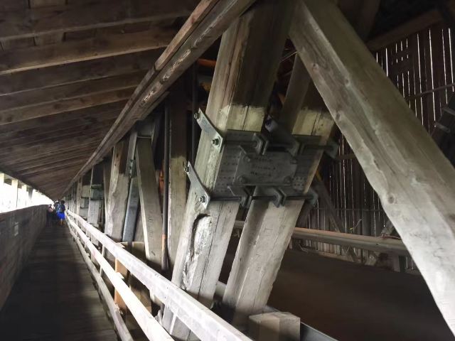 桥体全部由木头打造,经过一百多年风霜雨雪的冲刷,木质本身变成了灰黑色,显得尤其古朴。桥上有行车道和人行道,可以通车马和行人。站在桥上俯瞰两旁的圣约翰河,风景十分秀丽。