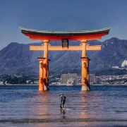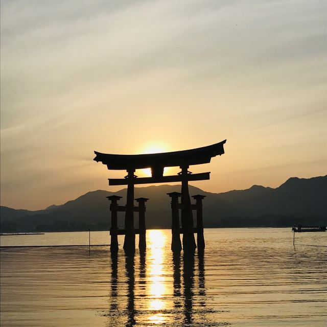 黄昏时分,金黄色的天空映照出大鸟居的雄姿,是拍照的好时机。晚上神社和大鸟居还会被灯光点亮,别有一番风味。如果你在宫岛留宿,清晨时的严岛神社和大鸟居尤具神圣的氛围,安宁美好,不容错过。