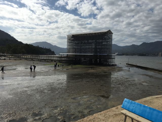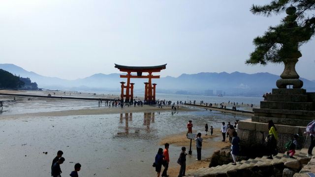 当然当初设计这里的人也是厉害,严岛最神奇的地方其实就是涨潮和落潮了,充分的利用涨潮的时候神社整个浮在水上,是海中神社,落潮时候人可以下到海滩上近距离观赏,太厉害了。当然每天涨潮落潮时间不一样,详情需要关注官网的。