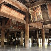 木制的阁内挂满了各种各样牌匾,而且基本上都是汉字的书法,与中国人的审美习惯还是一致的,另外还有好多的图画,用色很丰富。不过属于那个年代的东西是没有的,能看到的都是后人加上去的。总得来非常推荐,这里和五重塔一起,是非常值得一来的地方。