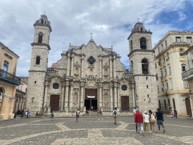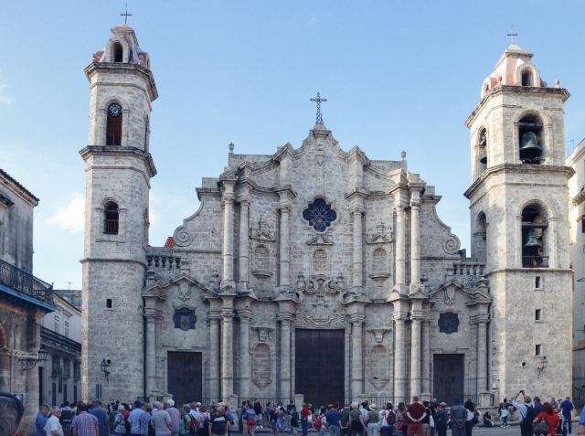 广场得名于其核心建筑——哈瓦那大教堂。这座巴洛克风格教堂始建于1748年,它以独特的波浪形立面和不对称的双塔设计著称,被誉为"石头谱写的音乐"。