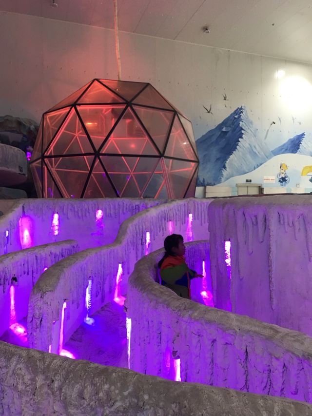 滑雪馆内除初学者滑雪道、中高级休闲雪道及教学雪道外,还为儿童特别打造了梦幻冰雪精灵城等戏雪设施,冰上滑梯、冰雪迷宫、冰雪造型建筑,仿佛来到《冰雪奇缘》的世界,满足孩子们对冰雪世界的奇思妙想。