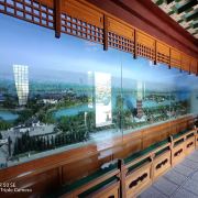 二楼为庐州宋韵厅。展示的是《古庐州市井图》的古绢彩绘壁画,它较完整地反映了宋代庐州一片歌舞升平、市井繁荣的景象。