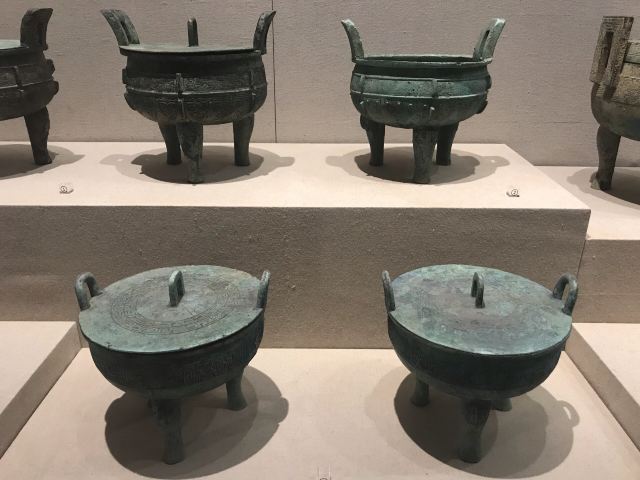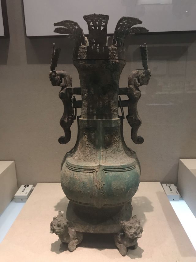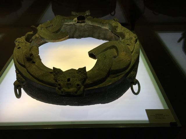 安徽也是战国时楚国地盘,都城最后迁到寿县被秦所灭。博物馆展出很多青铜器,器型风格沿袭楚风,而质地古朴尺寸偏小,全不似湖北省博物馆展出楚国青铜器那般精致灵动妖冶,侧面反映此时楚国已近末路。
