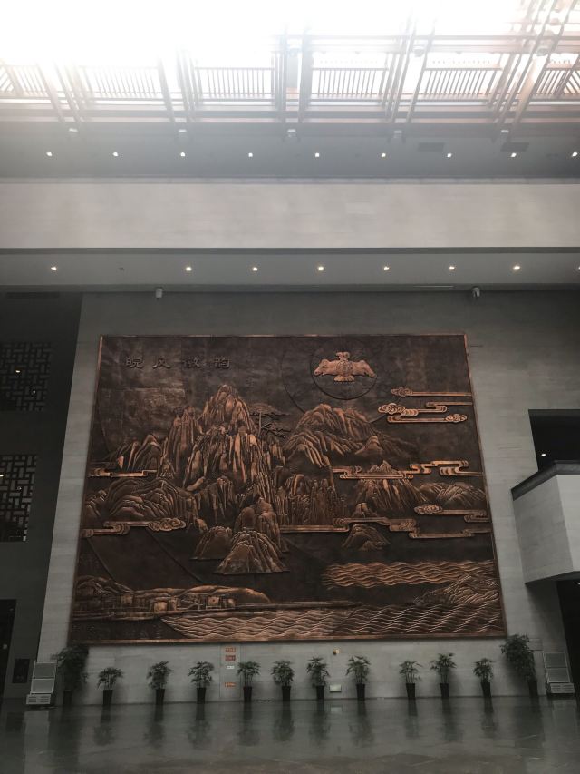 安徽省博物馆,分为老馆和新馆。在合肥期间,正值老馆不开,去的是新馆。新馆在天鹅湖附近,环境优美。建筑本身也很有徽派风格,镂空的雕花,看起来像是老宅的窗格,也像是青铜器上的云纹。看介绍说,代表了四水归田,五方相连。