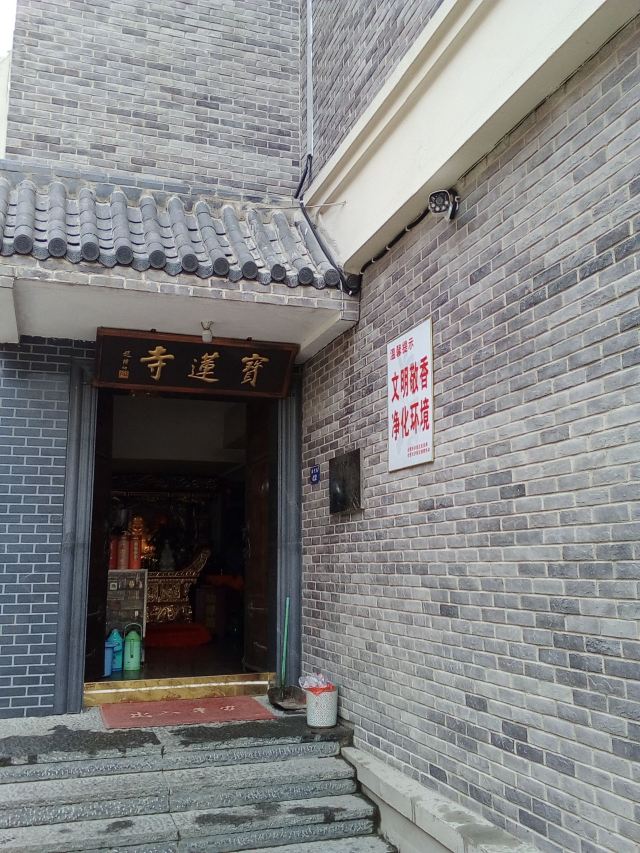 山门上“宝莲寺”三个金色大字,为原全国佛教协会会长赵朴初题书,佛堂中供奉观音菩萨金身塑像。寺内原住持胜海法师圆寂后现由僧尼浩莲住持。