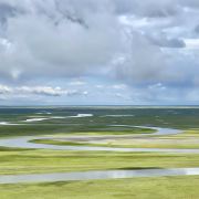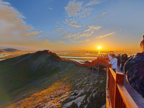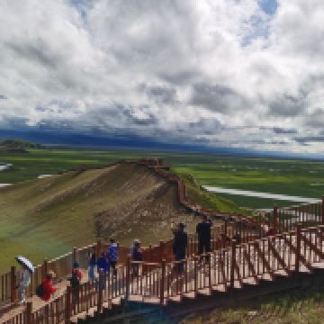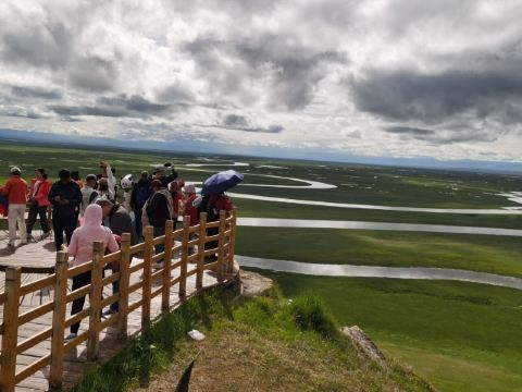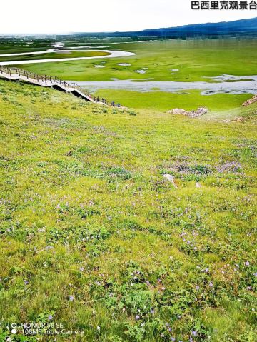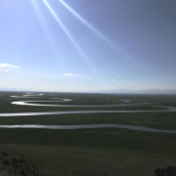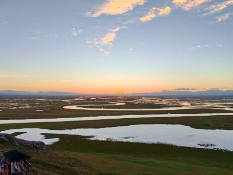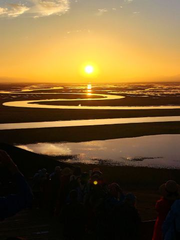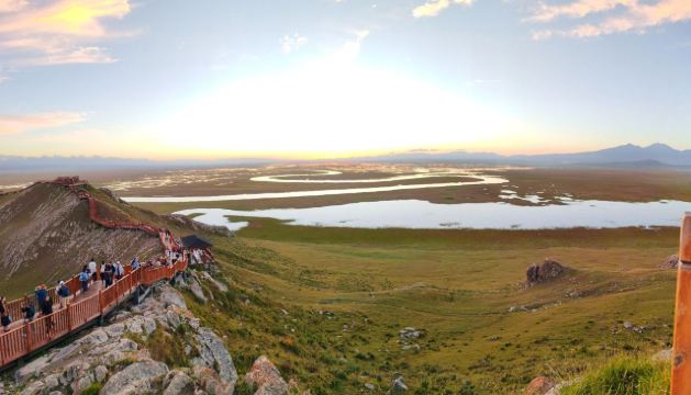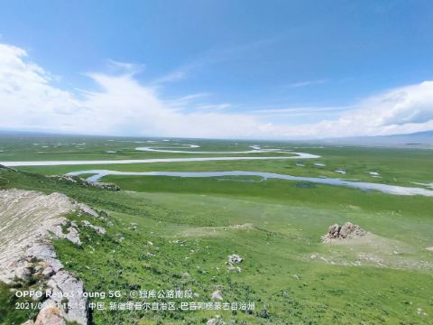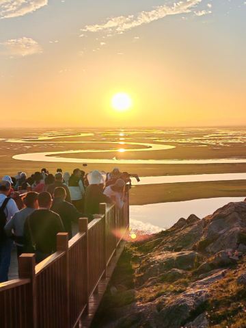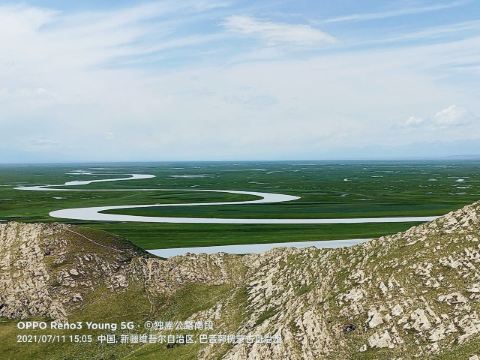 5分 超棒在我国四 大名 著之一的《西游记》中,开都河还有一个脍炙人口的名字——通天河,传说唐僧取经的“晒经岛”就在 和静 县境内,充满神秘气息。蜿蜒在草原上的开都河更素有“九曲十八弯”的美称。九曲十八弯的通天河,整个开都河,全长516公里,有1142个弯,可谓是曲折之水向东流,应该也算是典型的“蛇曲”。从九曲十八弯的游客中心到半山腰上的 巴西 里 克山 观景台还有一段3公里的木栈道,去观景台可以选择木栈道徒步,坐景区提供的每人20元的电瓶车,骑马上山几种方式。我们跟团游只有电瓶车。站在开都河边的高岗上向远处眺望,开都河千回百转,如梦如幻,它就像一条几十米宽的玉带蜿蜒穿梭于辽阔的草原上,一直通向天的尽头,它弯度的宏大,弯道的密集十分罕见。而更神奇的是:据说每年农历八月十五这天,当太阳落山的时侯,人们甚至能在河水中同时看到9个太阳!开都河这举世闻名的九曲十八弯,从南面绕过 巴西 里 克山 ,一路朝东南方向流过去,最终汇入数百公里之外的博斯腾湖。我们是下午到的,没有等到黄昏就离开了,那肯定是无缘看到,飘逸的河水,广袤的草原,俊秀的雪峰,蓝天上流淌的白云,犹如仙境。这就是美丽的巴音布鲁克。