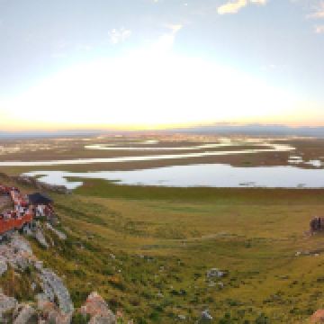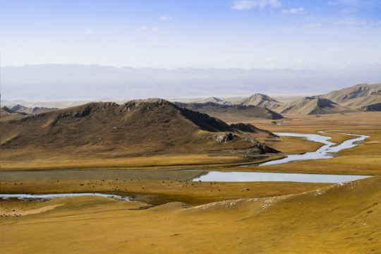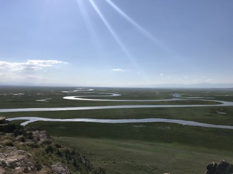 2、巴西里克观景台是第三个摆渡车停车点,是景区最精华之所在,高空俯瞰著名的草原九曲十八弯,绵延千里消失在地平线的尽头,让人的烦恼暂时抛于脑后,特殊条件下可以拍到“九阳连珠”的壮观景象(9个太阳=1个太阳+8个河中倒影),条形山脊犹如巨龙的尾巴,巍峨与瑰丽融合。观景台上有免费棉衣供应处,只需交100元押金即可,很人性化。开都河是新疆著名的内陆河,全长500多公里。从摆渡车站到观景台距离3公里。