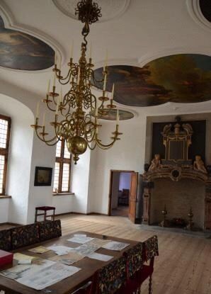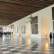 宫殿内的舞厅是北欧较大的宴会厅,黑白相间的大理石地面,华丽的水晶吊灯,周围的墙上悬挂的画作可以追溯到17世纪。