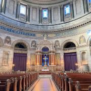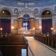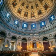 该教堂位于哥本哈根市皇宫广场对面,与阿玛莲堡隔道相望。步入教堂,你会惊叹于屋内巨大的圆顶,圆顶直径约30米,上面绘有耶稣的12个使徒的画像。教堂整个内部的装饰与绘画庄重、威严,在里面,游客会觉得自己的渺小,不自觉地屏住呼吸,静静地欣赏和领略宗教的不朽、庄严与神圣。