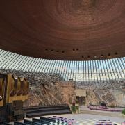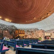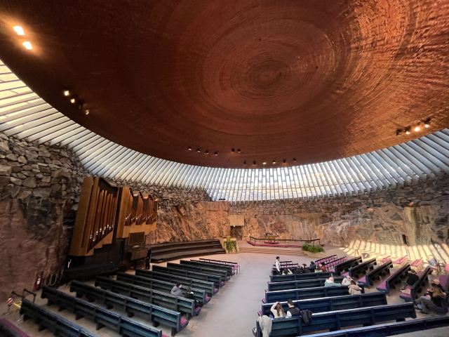 圣殿广场教堂建成于1969年2月,事实上在此处修建教堂的方案早在1930年已经存在,但是由于二战爆发,被迫搁浅。战后通过公开募集选择了现在的方案。人们来到这里都会为这座别具创意的杰作惊叹不已,难以想象一整块坚硬的岩石内部是如何被打造成一座教堂的。