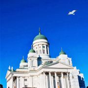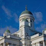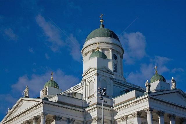 坐落于赫尔辛基参议院广场前的赫尔辛基主教座堂是赫尔辛基较出名的建筑,绿色的拱顶十分醒目,无论在市区的哪个角落都能看到这座器宇非凡的白色绿顶建筑,因此也被称为“白教堂”。