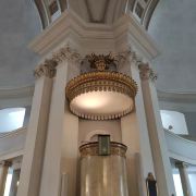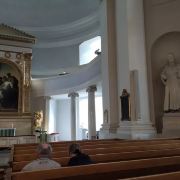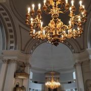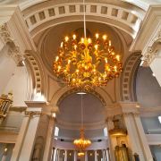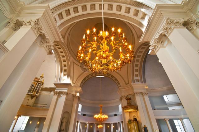 沿着铜像身后的百级台阶而上,就是这座新古典主义风格的赫尔辛基大教堂。教堂顶部周围是四个小圆顶,其上方有12位圣徒雕像,教堂正面为对称的希腊十字形,四面是柱廊和三角楣饰,主口位于西侧,祭坛位于东侧,教堂内部整体结构简洁,但不失精美,其气宇非凡。整座教堂堪称芬兰建筑史上的精华。这座教堂像其他教堂一样,也是免费开放的。它是每位到赫尔辛基旅行的人,不容错过的打卡之地。