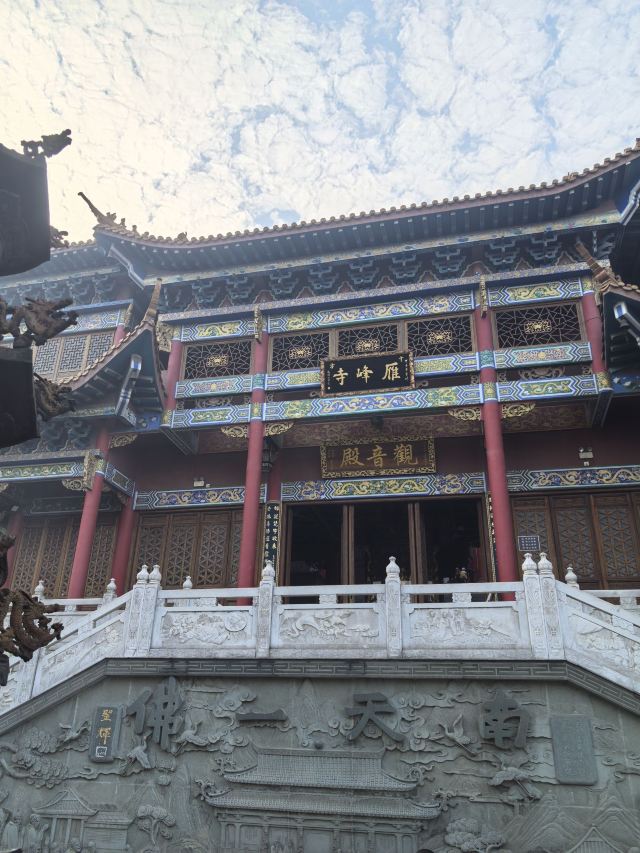 南岳第一峰上有一座古刹名雁峰寺,迄今已有一千五百多年的历史,正门悬挂赵朴初书写的“雁峰寺”。泥金横匾。寺院分前后两殿:前殿为观音殿,供奉着观音菩萨;后为寿佛殿,金刚台上端坐着3米高的寿佛。它与花药寺、西禅寺、罗汉寺并称为衡阳佛教禅宗四大寺院,历代有不少高僧都曾来此参禅。