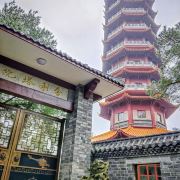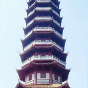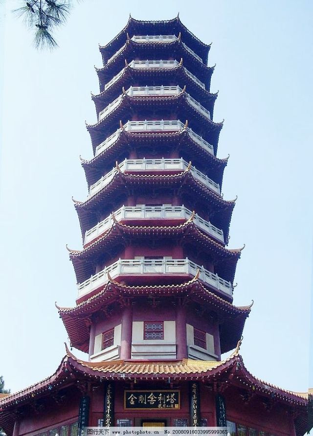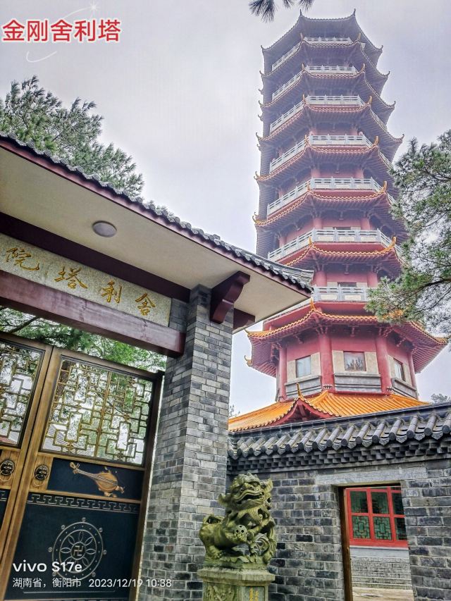 2、金刚舍利塔始建于隋仁寿三年(603年),隋文帝杨坚为父母祈福将佛骨舍利分封到30家寺院并建舍利塔,衡岳寺便在内,但衡岳寺在明代中期迁走。1969年在塔遗址下挖出舍利等文物,1995年鉴定后历时4年重建此塔,高48米,8面9层,目前一、二层正中是白色大佛,上塔需穿鞋套,每楼层均供奉不同的佛像,顶楼供奉2颗释迦牟尼佛真身舍利。