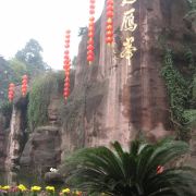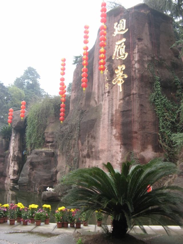 ④烟雨池:衡阳古八景之首的“雁峰烟雨实堪夸”的浓缩版,用人工小水池代表烟雨池,相传每逢下雨前,烟雨池会泛起水烟。池上石壁刻有“回雁峰”3字由近代革命元老、中央纪检委常委唐天际手书,附近刻有唐代诗人、《滕王阁序》作者王勃等诗人赞扬回雁峰的诗词。池前笔直的棕榈树下橘色小花星星点点,颜值较高,是景区的迎客景观。