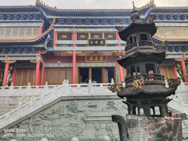 4分 满意通常很多靠山的寺庙会隐藏在偏远处,而由于回雁峰正处衡阳市中心,且面积就那么一丁点,偌大的雁峰寺已占据其不少部分,成为闹市中难得的清静去处。登山望远,衡阳老城高楼不多,视野开阔。