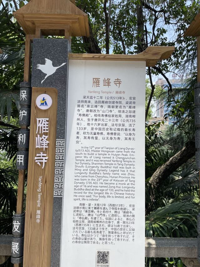 5分 超棒位于湖南衡阳市区中心回雁峰公园内回雁峰半山腰,规模不大,却是南岳衡山第一峰上第一寺,迄今已有一千五百多年的历史,历代高僧在此传经布道,唐代“寿佛”留有袈裟在雁峰寺,寺内设有“寿佛殿”,寿佛殿金刚台上端坐着3米高的寿佛,相传寿佛俗家姓周,号宗慧,享年139岁,据传为中国高寿第一僧,也是南岳称为“寿岳”的重要佐证。现在的雁峰寺由赵朴初先生题写牌匾,香火鼎盛,正月里香客云集,当地人都有年初到此进香,祈求人寿年丰的习俗。