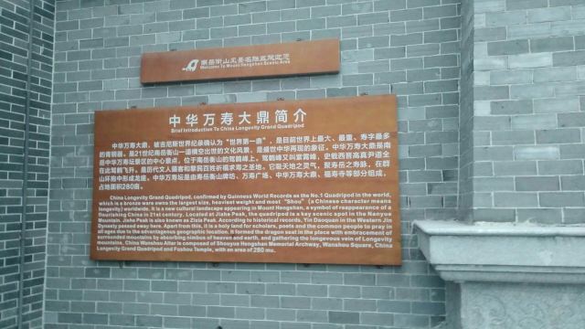 中华万寿大鼎是南岳盛景之一,此鼎用锡青铜铸造,是中华几千年博大精深寿文化精华的侬缩。