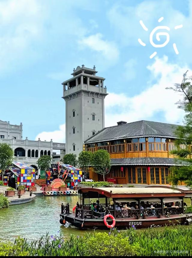 岭南风情小镇:四季花海、非遗市集、岭南建筑群构成岭南文化大观园。在这里,可打卡水岸花街(玫瑰花、木棉花、荷花、油菜花、向日葵、月季)、王老吉凉茶文化馆、咏春会馆,以及咏春桥(侨一桥)、双龙桥等各式桥梁,品尝鹤山鱼皮角、新会陈皮、恩平烧饼等非遗美食,在胡蝶影院邂逅光影艺术,于古劳塔聆听水乡故事,穿越古劳供销社重温旧时光。每日上演岭南风情表演,如咏春拳、民乐、戏法、马车巡游、水上婚俗、以及沉浸式剧场演出等,让人全方位感受独特的岭南文化。