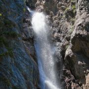 南山西白杨沟风景区-神布拉克瀑布位于断崖绝壁的松树林间,大约宽两米,长达数十米,声势浩大,飞流直下,非常壮观。