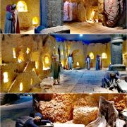 ④玉门关:位于室内,模拟室外的形貌。关内是各族各人种的商人百姓的生活状况;关外是苍茫的大漠布景。