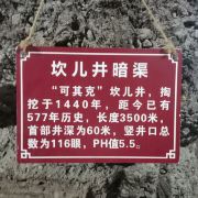 吐鲁番由于气候干燥、少雨、水源缺乏,当地各族劳动人民创造性地将地下水引导至地面进行灌溉和生活用水,被称为“坎儿井”,意为“井穴”。全疆有1784条坎儿井,总长度5272公里,吐鲁番地区历史上有1237条坎儿井,现存有水的坎儿井仅有214条。坎儿井是由竖井、暗渠、明渠和涝坝四部分组成,交河驿景区内的坎儿井名称为“可契克·阿吉”坎儿井,距今已有570多年历史。