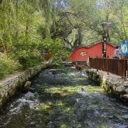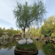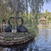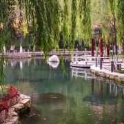 水磨沟风景区位于市区东侧城郊,是市内规模较大的景区,有小桥流水、亭台楼阁,环境优美,漫步观赏十分不错,还有人文古迹、娱乐项目等,是当地居民周末放松出游的好去处。水磨沟风景区面积很大,长宽大约都有几公里,里面有观光车,可以乘车游玩。在景区内,有湖水、树木、金鱼和假山等,环境非常不错,另外还有纪晓岚、左宗棠等历史名人的雕像等,都可以一一参观。景区里有一些儿童游艺项目,湖上可以泛舟划船,都适合带小朋友前来游玩。除了参观景区外,水磨沟还是有名的温泉胜地,在景区西侧,有维斯特假日温泉酒店、雪莲山高尔夫温泉水疗会所等。