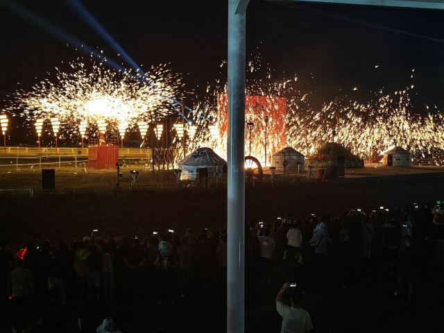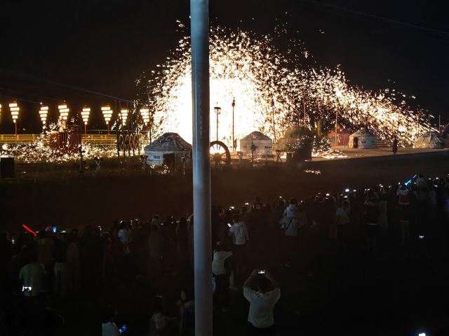 5分 超棒乌兰布统晚上终于能有点儿活动了,不然太无聊了,打树花真是太震撼了,篝火🔥真是把整个氛围都带动起来了,总之就是太值了,丰富了乌兰布统夜生活呀,晚上结束,还在园区的酒吧里头喝了点儿,得劲儿