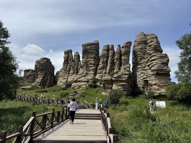 它分布在大兴安岭高峰——黄岗峰以北约40公里,海拔1700米的北大山上。亲临景区,才能真正理解风雪铸就花岗岩石的鬼斧神工。这里蓝天、白云、森林、草原、地质遗迹,以它的自然纯净,多姿多彩,展示着博大的自然魅力。