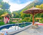 度假邨拥有多个形状不一,功能各异的温泉泡池错落于山野林间,各类中医药池、纯温泉池、石板浴、泳池、儿童水上乐园、干湿桑拿房等一应俱全,山顶的无边际池是整个温泉区的 网红打卡点,在这里能够俯览整座温泉酒店,泡着温泉远眺最远古村落的全貌。