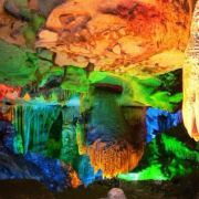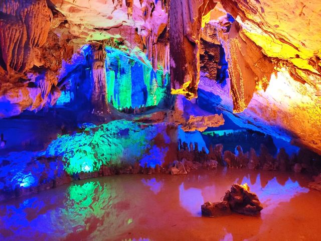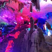 5分 超棒紫云洞位于贺州市栗木村,这里虽然成型于一亿九千万年前,但由于原来在海平面抬升时,溶洞内的瘀泥在经历了漫长的时间才自然溶蚀形成了溶洞,然后洞中的碳酸钙结晶又经历了漫长的积聚过程,各种钟乳石、石笋、石柱、石幕、滚石坝、穴珠才慢慢地生长和形成。